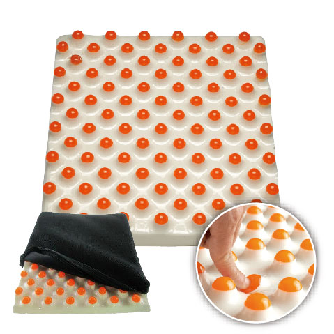 ● The hemisphere projections help diffuse heat and moisture. ● The hemispheres with soft gel on top featured massage function. |
