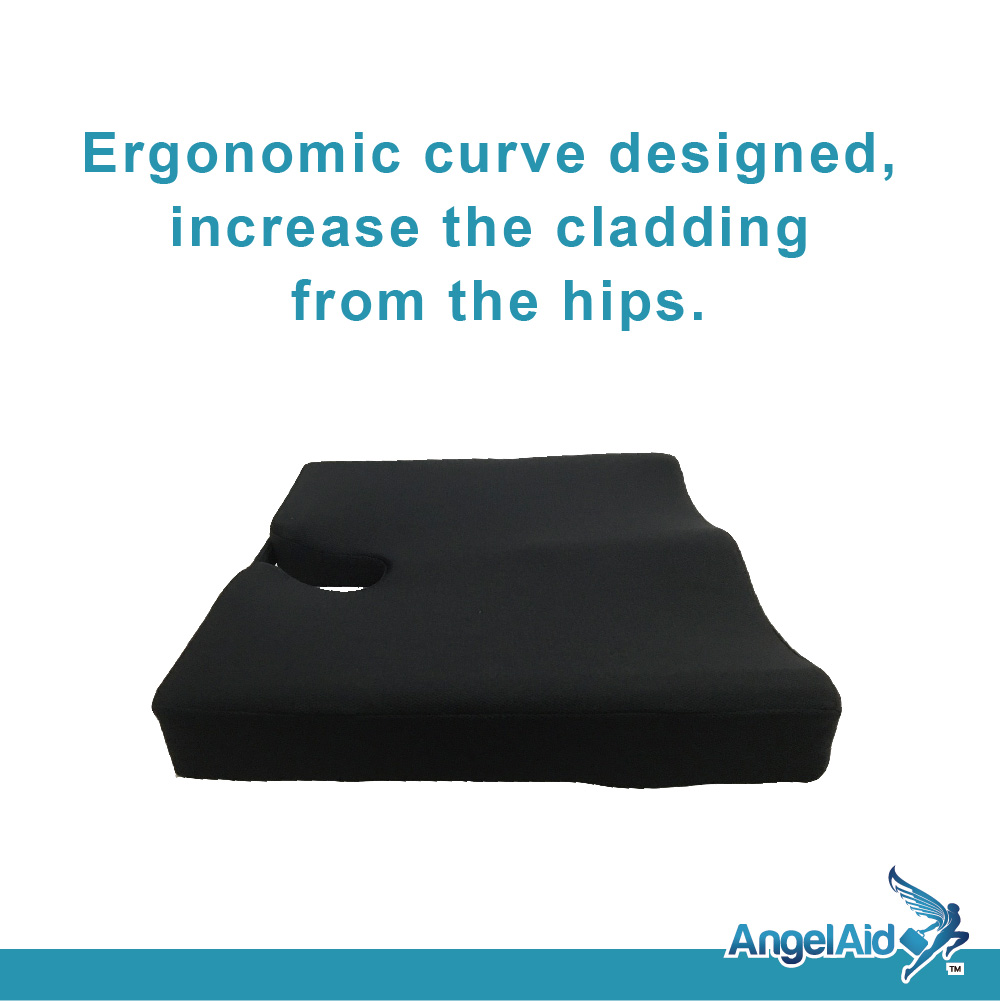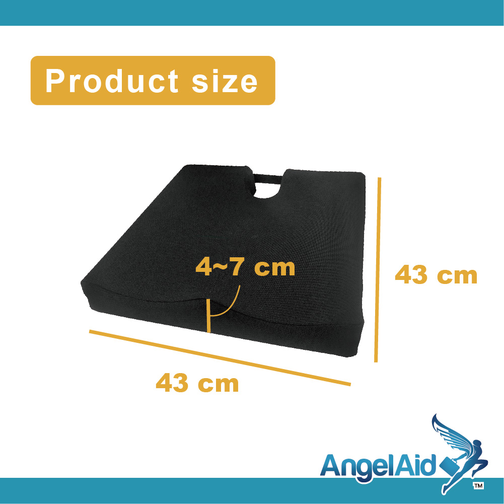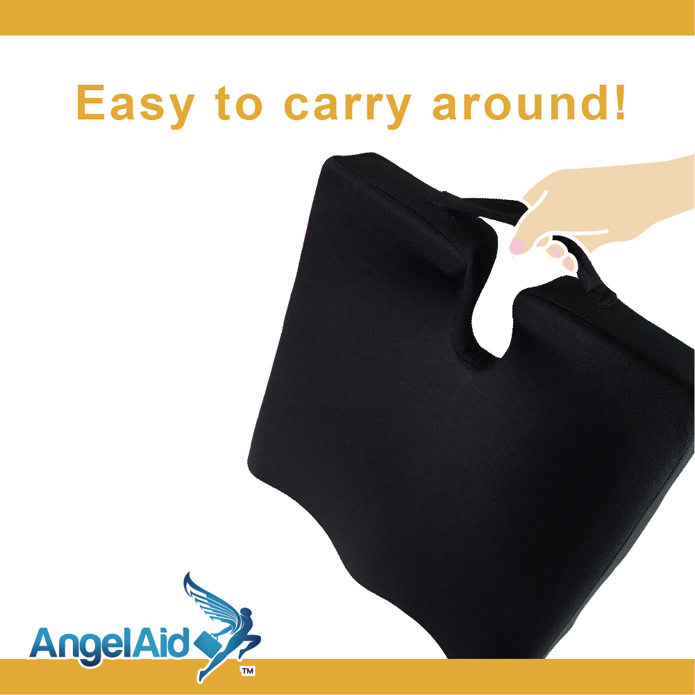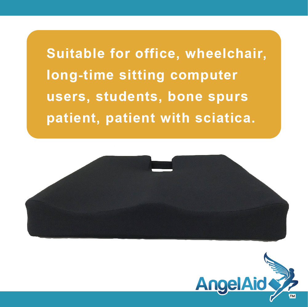 ● Fitting office chairs, wheelchairs, long-time computer users, students, and patients with sciatic or hemorrhoids. ● The U-shaped hollow designed at the back of the cushion can reduce the pressure from tail vertebrae and also relieve the discomfort caused by back pain and hemorrhoids from prolonged sitting. ● Ergonomic-shaped designed can increase the surrounding from the hips for prolonged sitting; fitting the shape of hips also helps improve the hips curve. ● Handle designed from the back, convenient for carrying. |