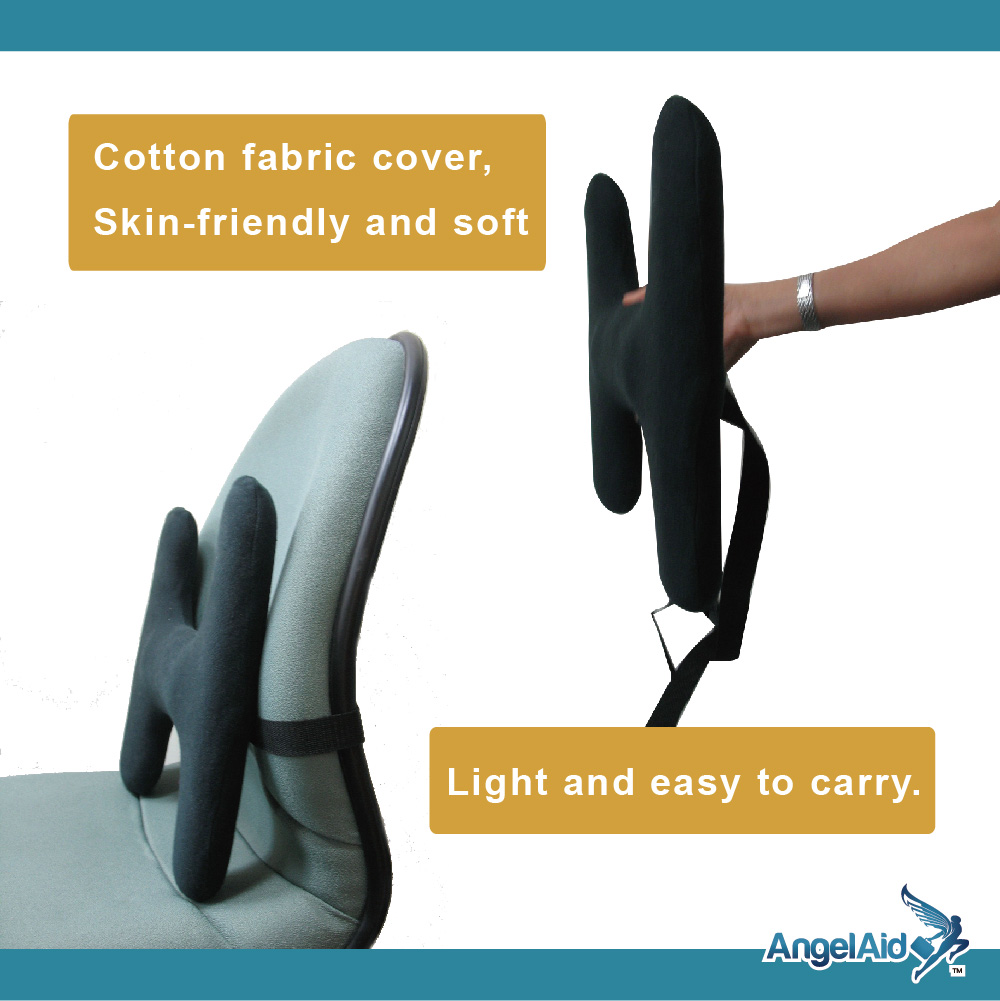 ● Contoured design provides the best support on the lumbar. ● High-low support design by laying opposite directions to fit the user's different lumbar height. ● Buckle-pu design, easy to fasten on the back of the chair. ● With an adjustable buckle strap that holds the cushion in place. |