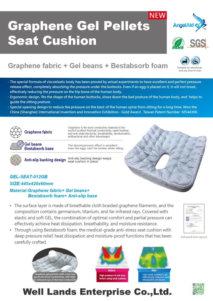 | Details: | ● The surface layer is made of breathable cloth braided graphene filaments, and the composition contains germanium, titanium, and far-infrared rays. Covered with elastic and soft GEL, the combination of optimal comfort and partial pressure can effectively achieve heat dissipation, breathability, and moisture resistance. ● Through Bestabsorb foam, the medical-grade anti-stress seat cushion with deep pressure relief, heat dissipation and carefully crafted moisture-proof functions. |