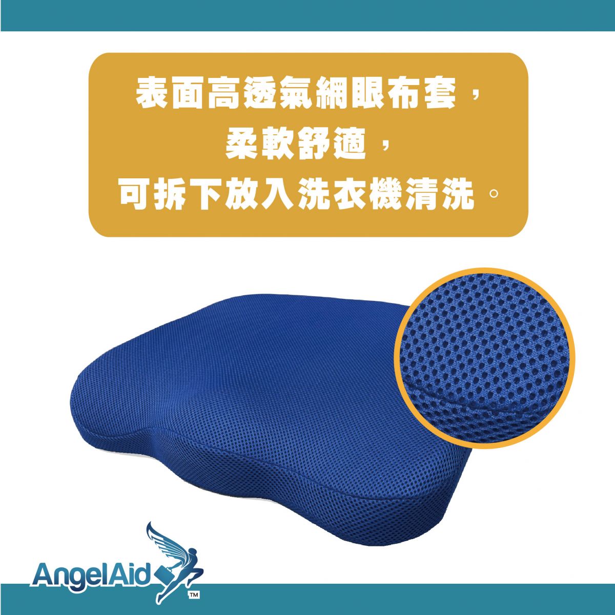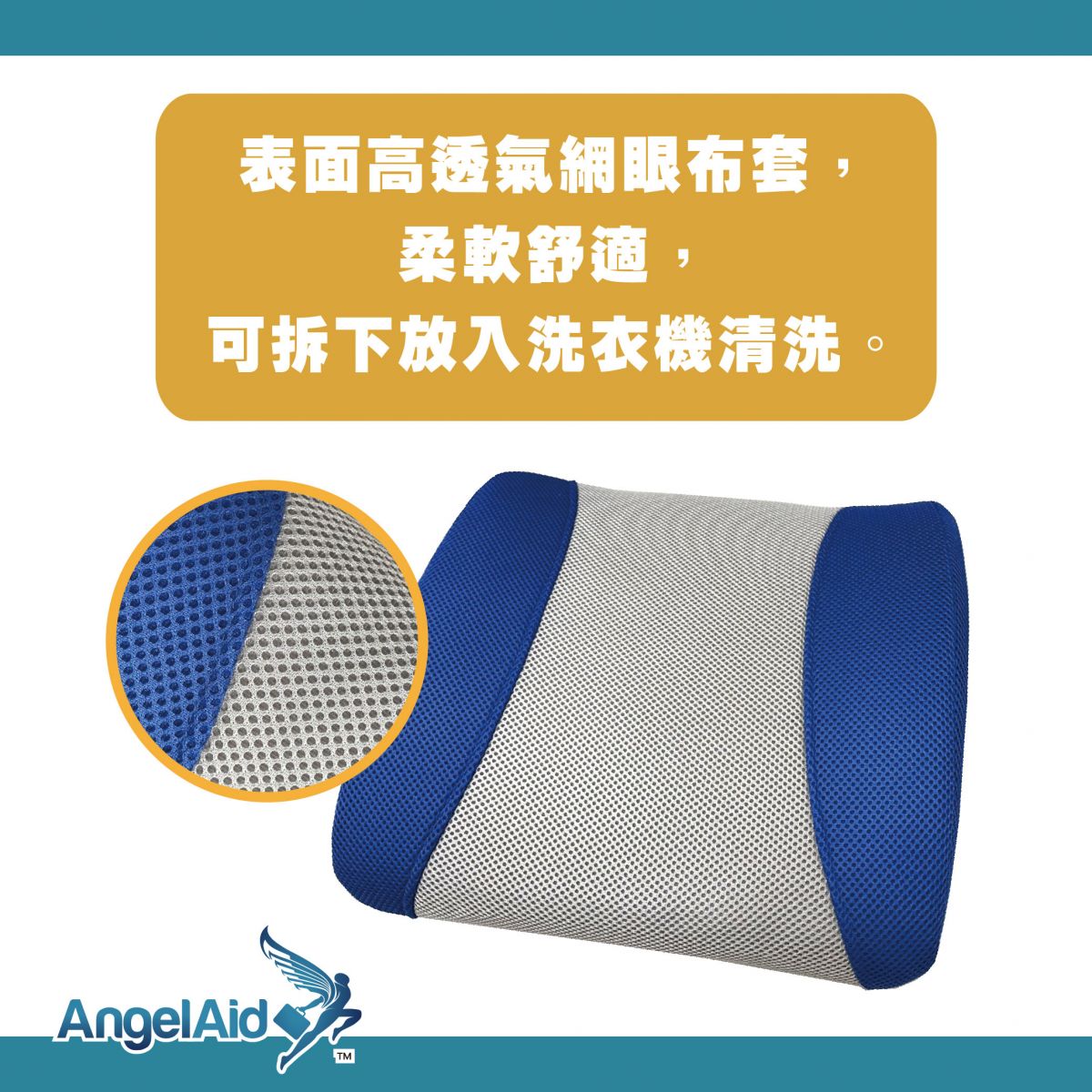 4.表面高透氣網眼布套,柔軟舒適,可拆下放入洗衣機清洗。