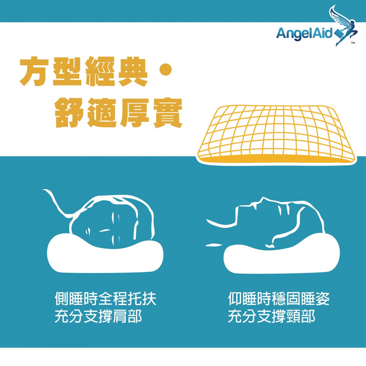 • 方形經典,表面厚實平整,舒適度極佳。麵包型設計,環抱弧面,完整托扶,完美釋放壓力。